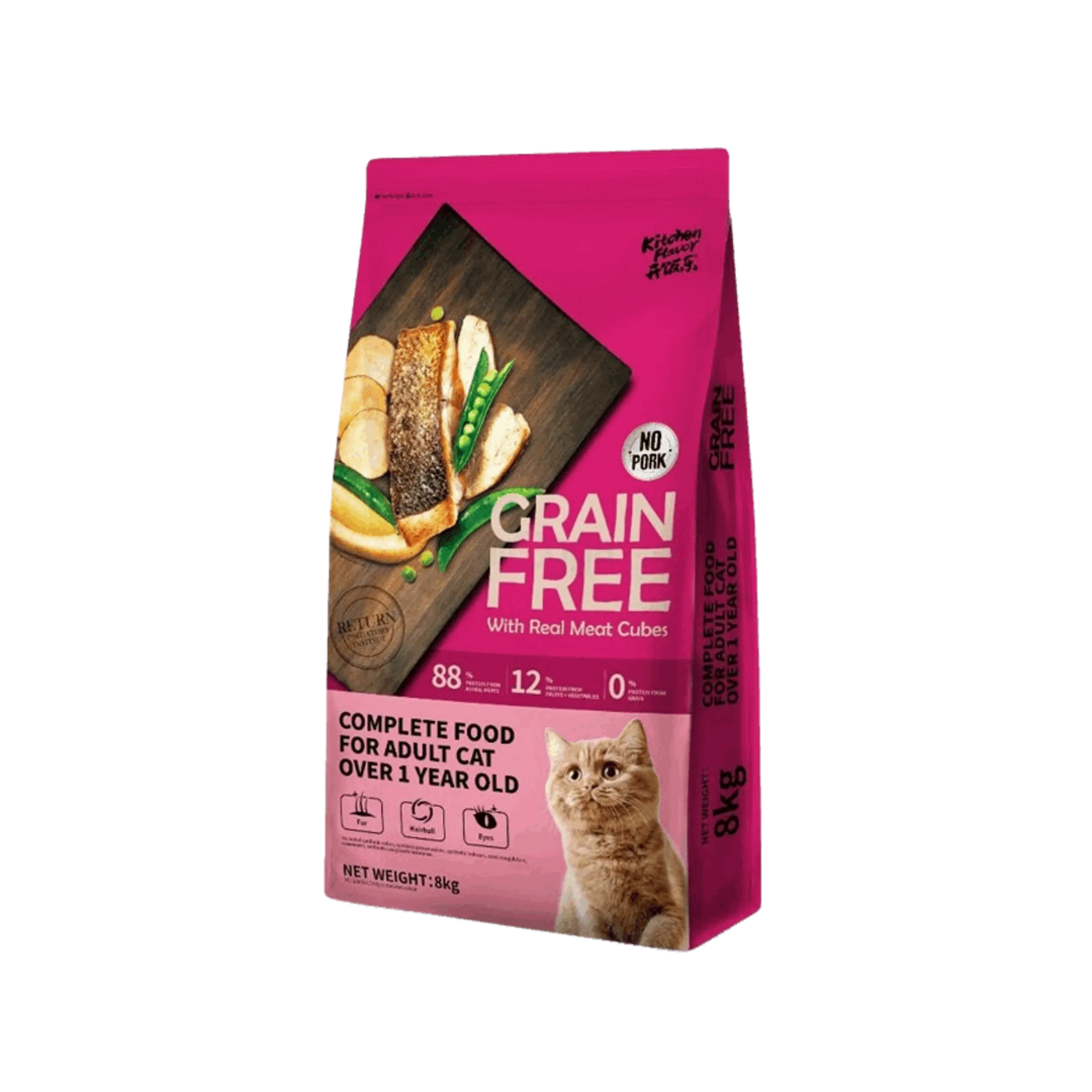 The Grain Free with Real Meat Cubes 8kg Adult Cat Food is meticulously crafted to cater to the nutritional needs of adult cats. Free from grains, this formula is ideal for felines with sensitivities, ensuring easy digestion and reduced risk of allergies. The inclusion of real meat cubes offers a high-quality protein source, essential for muscle development and overall health. Natural ingredients promote a lustrous coat and healthy skin, while the exclusion of pork aligns with specific dietary preferences. This complete and balanced diet ensures your cat thrives with every meal.