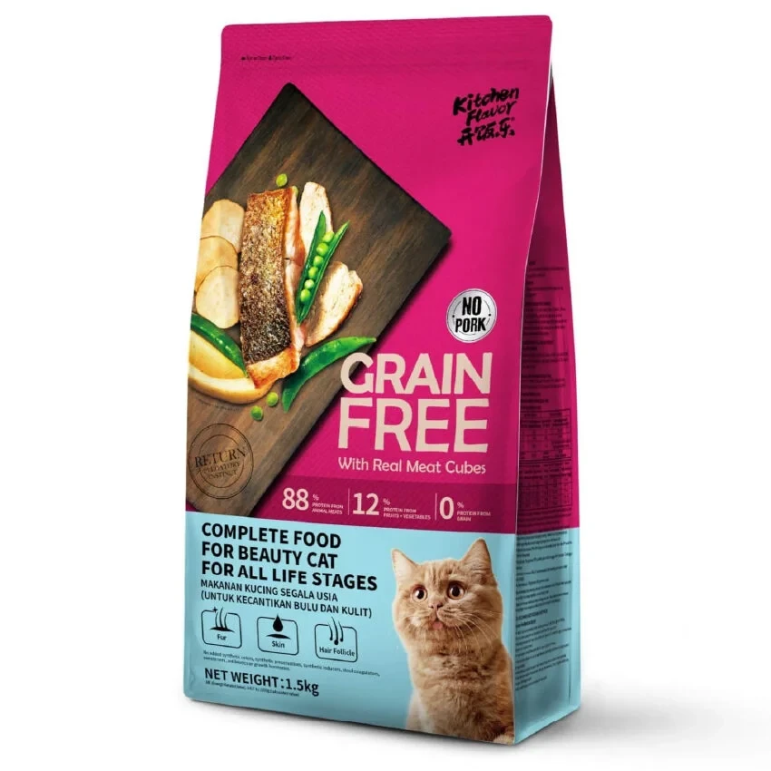 Give your cat the five-star treatment they deserve. Choose Kitchen Flavor Grain Free Beauty Cat Food for a healthy, happy, and beautiful companion.