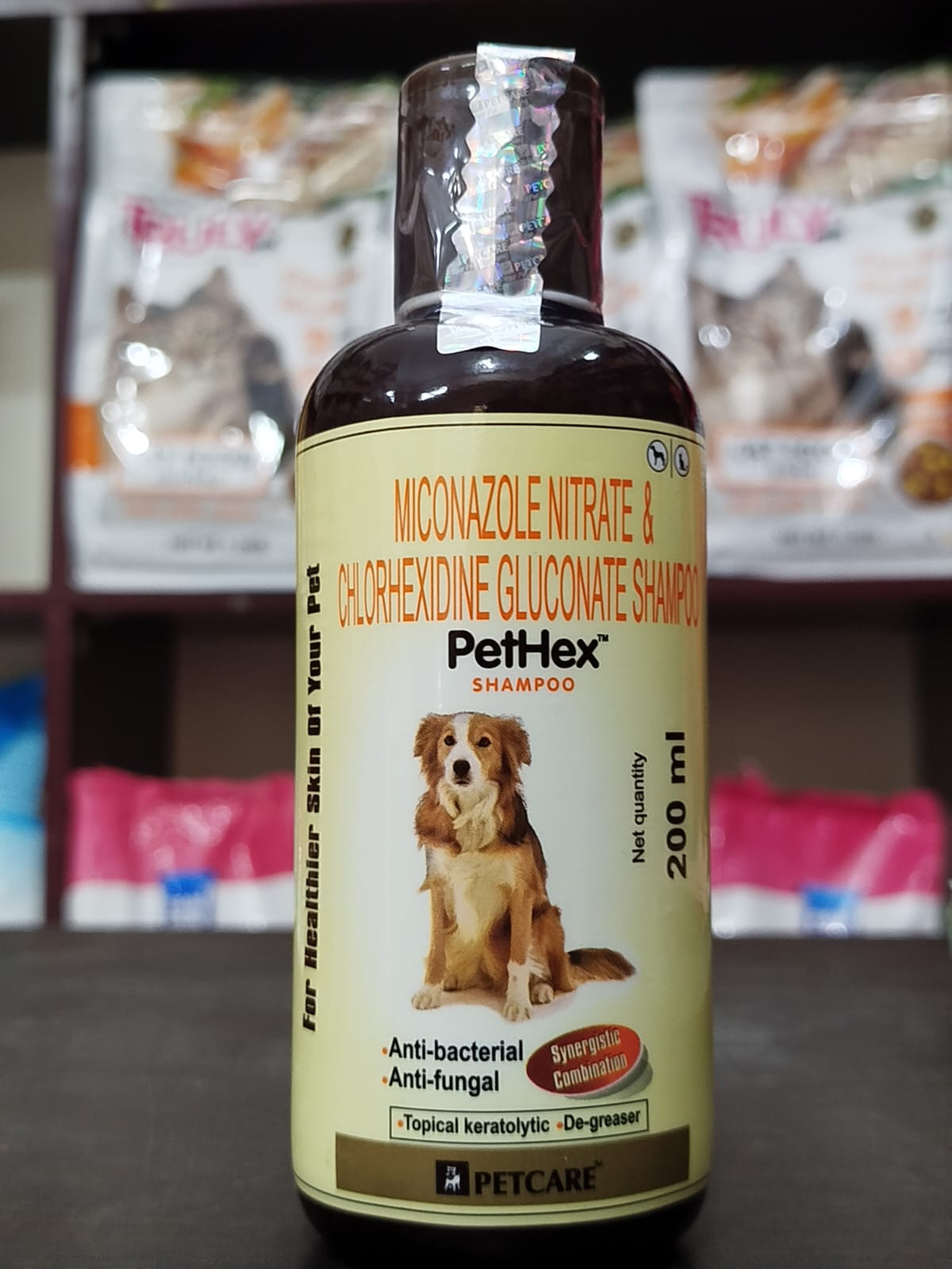 PetHex Shampoo is designed to help maintain your pet's skin health with its anti-bacterial and anti-fungal properties. Formulated with Miconazole Nitrate and Chlorhexidine Gluconate, it effectively treats skin conditions like fungal infections, bacterial infections, and more. Ideal for both dogs and cats, this shampoo works as a topical keratolytic, degreaser, and overall skin cleanser to keep your pet's coat shiny and healthy.