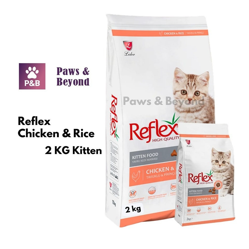 Reflex high quality Chicken & Rice Kitten Food is specially formulated to meet the nutritional needs of growing kittens. With real chicken and rice as the primary ingredients, this high-quality kitten food supports healthy development, growth, and digestion. Packed with essential nutrients, vitamins, and minerals, Reflex Kitten Food helps maintain strong muscles, a healthy coat, and optimal immune function. The 2kg bag provides an ideal supply for your kitten's daily feeding needs.