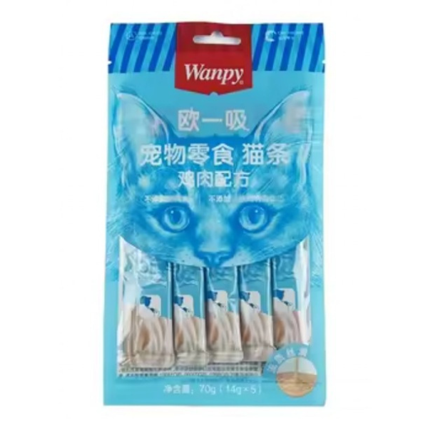 Wanpy's Creamy Lickable Cat Treats in Chicken Flavor are crafted to provide your cat with a tasty and nutritious snack. Made from high-quality chicken fillet, these treats have a smooth, creamy texture that cats adore. Enriched with essential vitamins and taurine, they support your cat's health, including vision and heart function. The low-fat content makes them suitable for cats of all breeds and ages, including those prone to weight gain. Serve directly from the pouch, add to dry food for enhanced flavor, or use as a disguise for medications. Free from artificial colors and preservatives, these treats ensure a natural and safe indulgence for your feline companion.