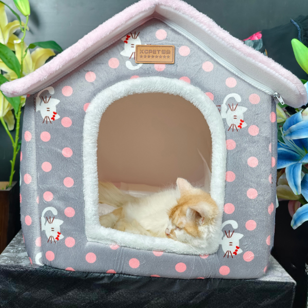 Give your furry friend a cozy and adorable place to relax with this Soft Indoor Pet House. Designed with a cute polka-dot pattern and a plush pink roof, this pet house adds both comfort and charm to your home. The warm, padded interior creates a secure space perfect for cats, small dogs, and other small pets. Lightweight, foldable, and easy to clean — it’s the ideal combination of style and functionality.