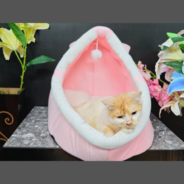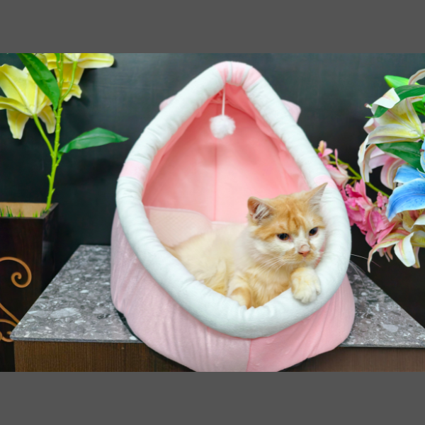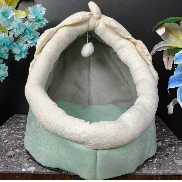 A fluffy hanging pom-pom toy adds a fun, playful touch, and the plush cushion inside ensures all-day comfort. Ideal for cats, kittens, small dogs, or any small pet who favors warmth, softness, and a quiet place to relax.