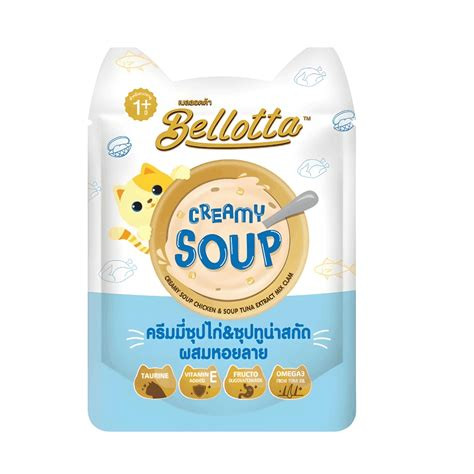 Bellotta Creamy Soup is a delectable wet food designed for adult cats. This 40-gram pouch features a rich blend of tuna, chicken extract, and clam, offering a flavorful and nutritious meal that caters to feline taste preferences. The creamy texture ensures palatability, making it an excellent choice for picky eaters.